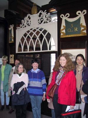 La troisième visite est consacrée à la Bibliothèque Marsh construite en 1701 par l’archevêque Marsh. C’est la plus ancienne bibliothèque publique d’Irlande. Elle est constituée de 25 000 livres du XVème au XVIIIème siècles. Des ouvrages religieux, maus aussi toutes les disciplines sont représentées. Tout est resté en l’état. Nous avons admiré les belles travées aux pigons sculptés, les superbes reliures. Notre collègue et guide du jour, Ann Simmons, a enflammé notre imagination avec son récit du fantôme qui se promènerait la nuit dans la bibliothèque à la recherche d’une lettre glissée dans les pages d’un des livres. L’ombre de Johnathan Swift, qui fut le responsable de cette bibliothèque, rôdait encore dans ce lieu, mais personne n’a eu envie de rester enfermé dans les niches en grillages ou l’on bouclait les lecteurs avec leurs livres.